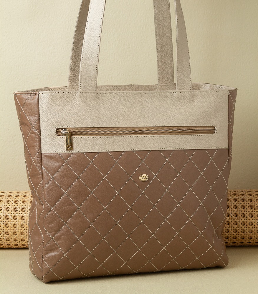 Este elegante bolso para dama está elaborado en cuero de alta calidad, destacándose por un diseño acolchado con costuras en forma de rombos, que le aporta un estilo sofisticado y atemporal.