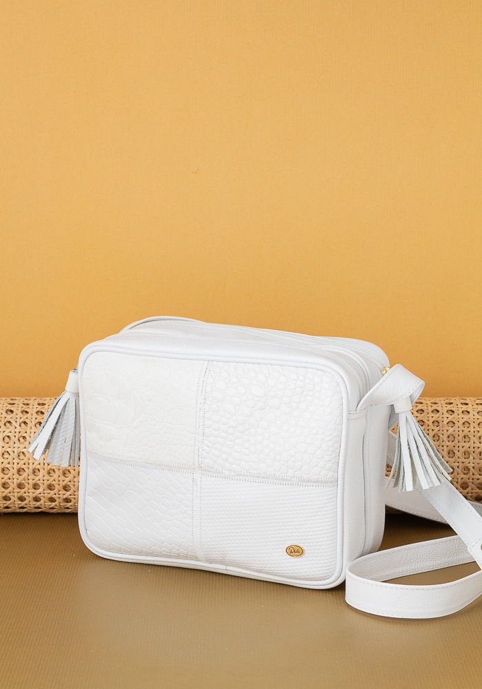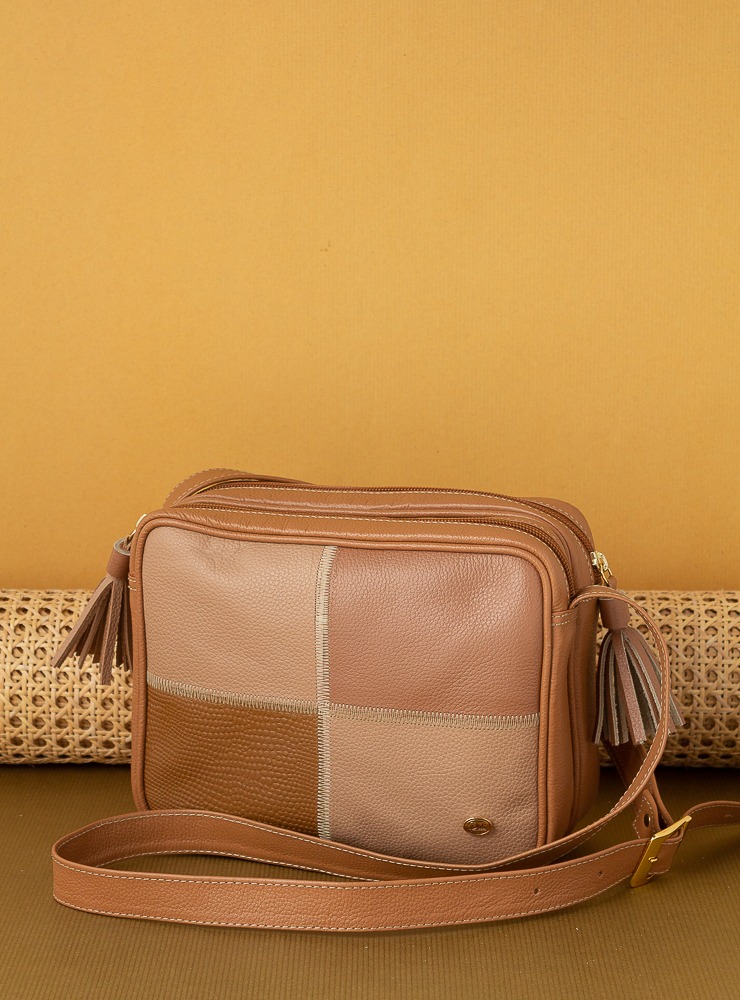 Bolso para dama elaborado en cuero de alta calidad. Su diseño frontal presenta un delicado juego de texturas y costuras decorativas que realzan su apariencia artesanal. Cuenta con doble compartimento principal con cierre de cremallera, lo que permite una organización práctica y segura de los objetos personales. Incluye una correa ajustable para llevarlo cómodamente al hombro o cruzado, además de detalles decorativos con borlas laterales que le dan un toque femenino y contemporáneo. Ideal para uso diario, salidas casuales o actividades donde se busca comodidad sin perder el estilo
