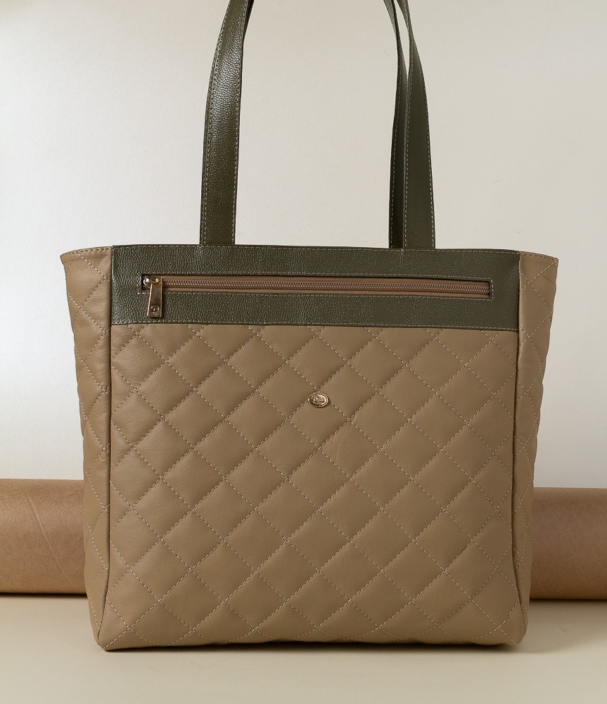 Cuenta con doble asa larga para llevar cómodamente al hombro, ofreciendo practicidad en el uso diario. En la parte exterior incluye un bolsillo con cierre metálico, ideal para guardar objetos de acceso rápido. Los detalles en herrajes dorados añaden un toque de distinción.