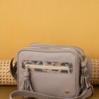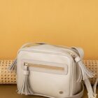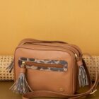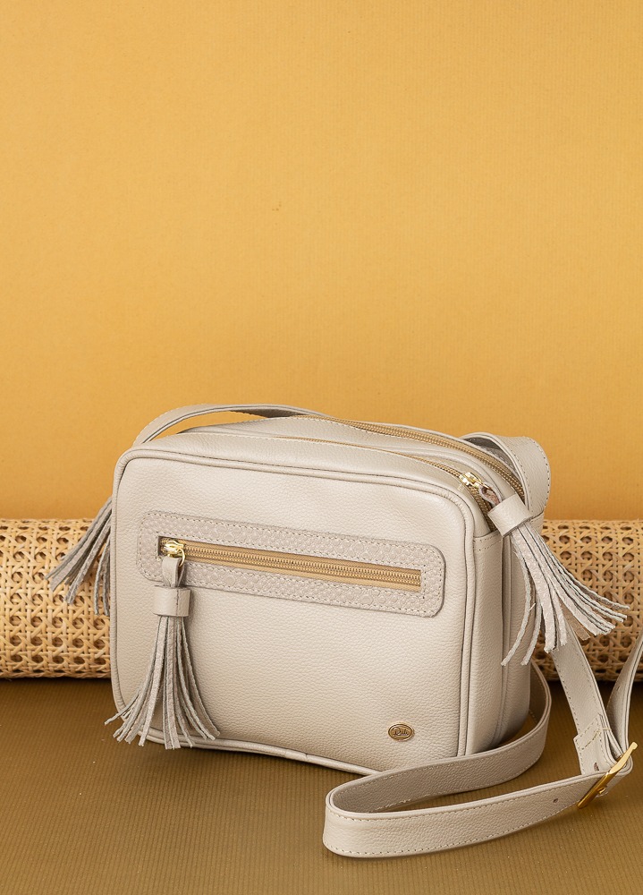 Cuenta con compartimentos con cierre para mantener tus pertenencias seguras y organizadas, además de un bolsillo frontal con cremallera que facilita el acceso a los objetos de uso frecuente. Sus borlas decorativas añaden movimiento y personalidad al diseño.