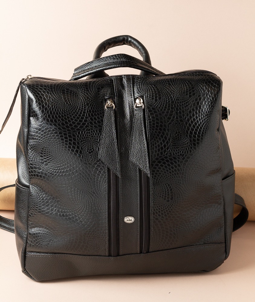 El diseño cuenta con doble cierre frontal, asa superior acolchada para llevar en la mano, y cómodas correas ajustables para llevar al hombro o en la espalda. Su estructura amplia permite transportar objetos personales, documentos o incluso una tablet o agenda, ideal para la rutina diaria, trabajo o estudio.