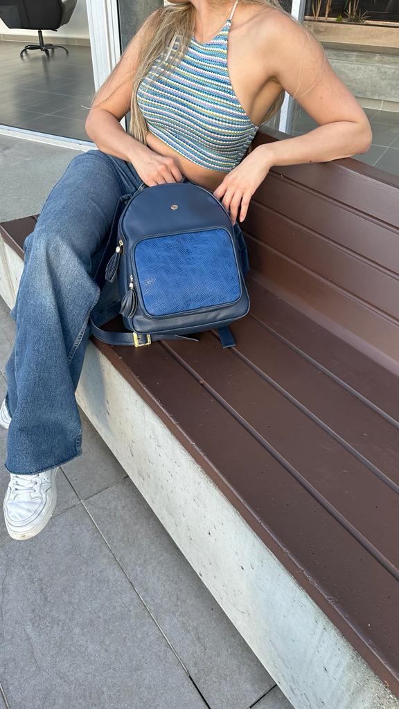Este morral de diseño sofisticado está confeccionado en cuero genuino, ofreciendo una combinación ideal entre funcionalidad, durabilidad y estilo. Su acabado con textura suave se complementa con detalles en cierre metálico y tiradores en acabado tipo piel de serpiente, brindando un toque moderno y atrevido.